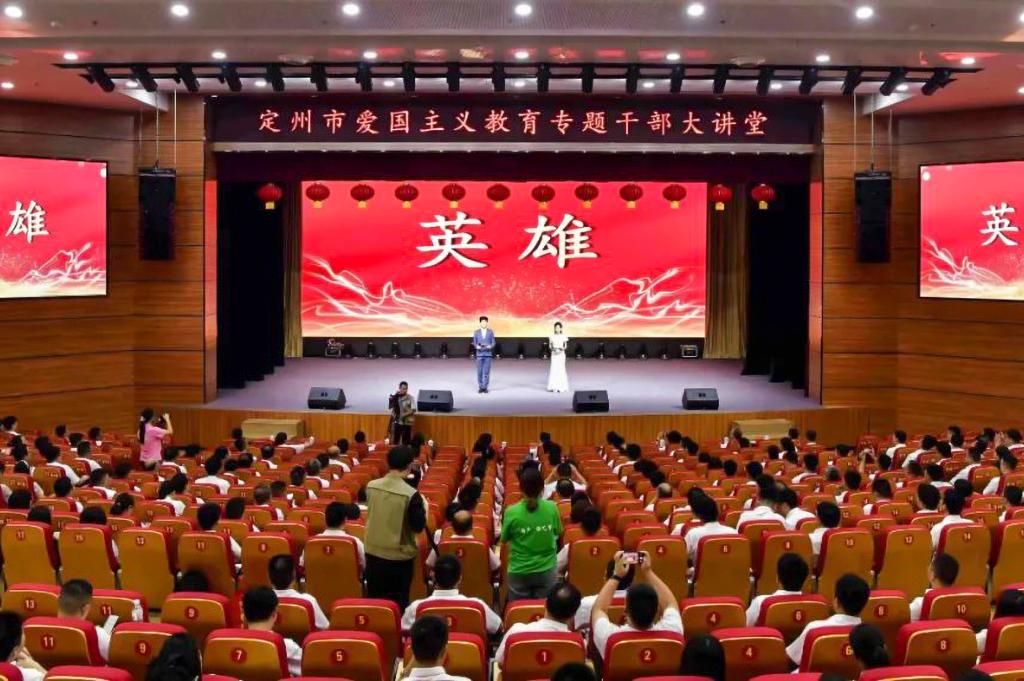 時值“七七”前夕,7月6日晚,推普團在定州中學藝術禮堂登上“愛國主義教育專題干部大講堂”,為六百余名定州市領導干部帶來了一場精彩的“新聲”語藝推普團“英雄”主題朗誦會。推普團以“光榮時代 崢嶸歲月”為主題,采用舞臺朗誦藝術手段,用精心的配樂,熟練的技巧,聲情并茂地演繹了《我們都是您的孩子》《攀登者》《心中的額吉》《站臺》《藍天試劍》《鋼鐵》《乳娘》等一個個久經淬煉的精彩節目,贏得了在場觀眾的陣陣掌聲。朗誦會結束后,定州市高新區紀檢監察工委副書記馬譽伯表示,整場朗誦水平很高,讓在場領導干部都深深地感受到了愛國主義情懷,必將敦促大家帶著熱情與激情更加用情用力投入到城市建設當中。