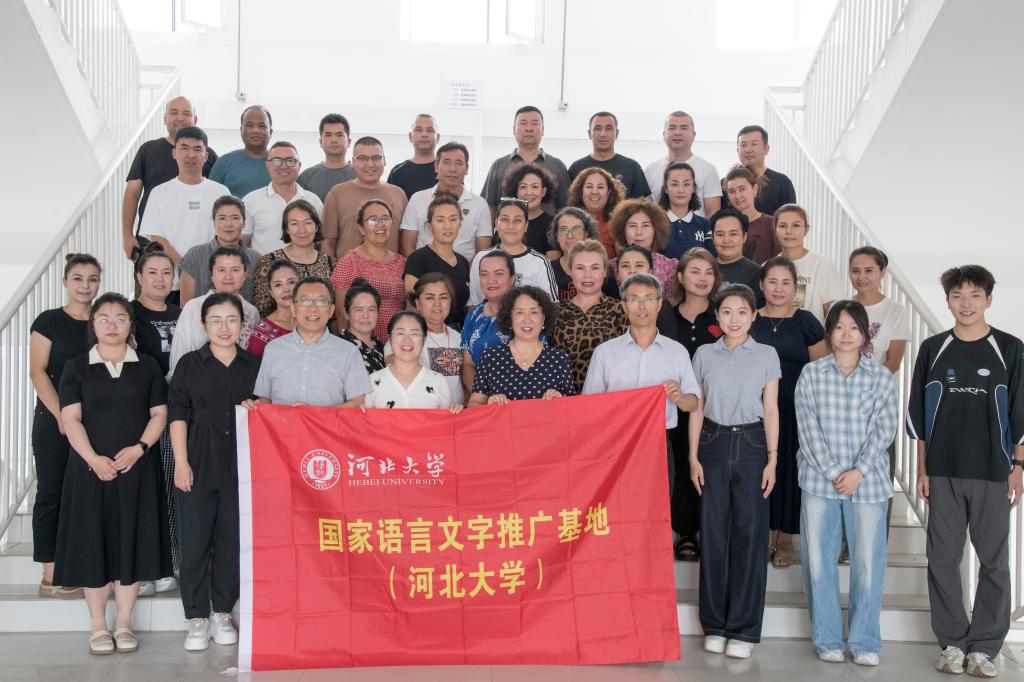 7月16日上午,河北大學國家語言文字推廣基地師生抵達新疆庫爾勒市第十一中學,正式啟動面向少數民族教師的國家通用語言文字應用能力提升培訓。本次培訓是教育部語用司2025年專項任務之一,也是河北大學首次以線下送課的方式為全體學員提供為期8天的普通話教學。