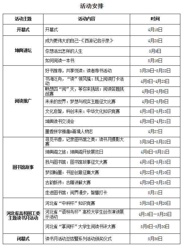 4.河北省高校圖工委組織的讀書月系列活動。