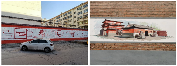 學生們走進保定市蓮池區社區,為大慈閣小區、藥四小區、東元寶小區等六個社區繪制不同主題的文化墻,共計繪制小區面積約677平方米,獲得社區居民一致好評。此項活動不僅美化了保定市多個小區的環境,為小區居民提供了良好的生活環境,還助力城市文化建設,彰顯城市文化特色,展現了藝院學子們的專業風采。