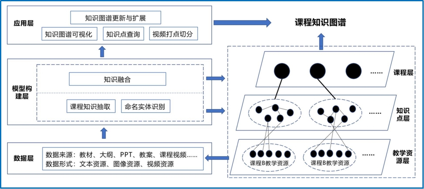 知識圖譜以課程為基本單元,通過自動或半自動方式,從教學資源中提取并整合分類及知識點,為教師提供能夠高效組織并持續利用的教學資源工具,極大提升教學資源的管理和應用效率。同時也為學生提供了易于獲取和深入理解課程知識體系的途徑,增強學生的學習體驗,提高學習效率。