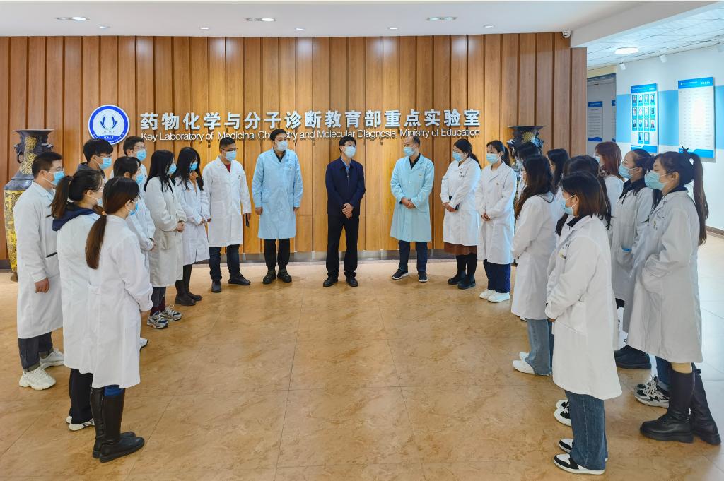 黨的二十大對(duì)實(shí)施科教興國(guó)戰(zhàn)略作出戰(zhàn)略部署,提出要辦好人民滿意的教育、完善科技創(chuàng)新體系、加快實(shí)施創(chuàng)新驅(qū)動(dòng)發(fā)展戰(zhàn)略、深入實(shí)施人才強(qiáng)國(guó)戰(zhàn)略,為高校改革發(fā)展指明了前進(jìn)方向。郭健來(lái)到藥物化學(xué)與分子診斷教育部重點(diǎn)實(shí)驗(yàn)室,詳細(xì)了解實(shí)驗(yàn)室建設(shè)情況、科研項(xiàng)目進(jìn)展情況,向一線教師、研究生宣講黨的二十大精神。郭健指出,黨的二十大報(bào)告首次把教育、科技、人才進(jìn)行“三位一體”統(tǒng)籌安排、一體部署,極具戰(zhàn)略意義和深遠(yuǎn)影響,要深刻認(rèn)識(shí)高校在加快建設(shè)教育強(qiáng)國(guó)、科技強(qiáng)國(guó)、人才強(qiáng)國(guó)中的責(zé)任與使命,堅(jiān)持“四個(gè)面向”,發(fā)揮教育部重點(diǎn)實(shí)驗(yàn)室平臺(tái)優(yōu)勢(shì),加強(qiáng)有組織科研,培養(yǎng)造就優(yōu)秀創(chuàng)新團(tuán)隊(duì)和拔尖創(chuàng)新人才,弘揚(yáng)科學(xué)家精神,開(kāi)展科技攻關(guān),為加快建設(shè)世界重要人才中心和創(chuàng)新高地做出河北大學(xué)的貢獻(xiàn)。