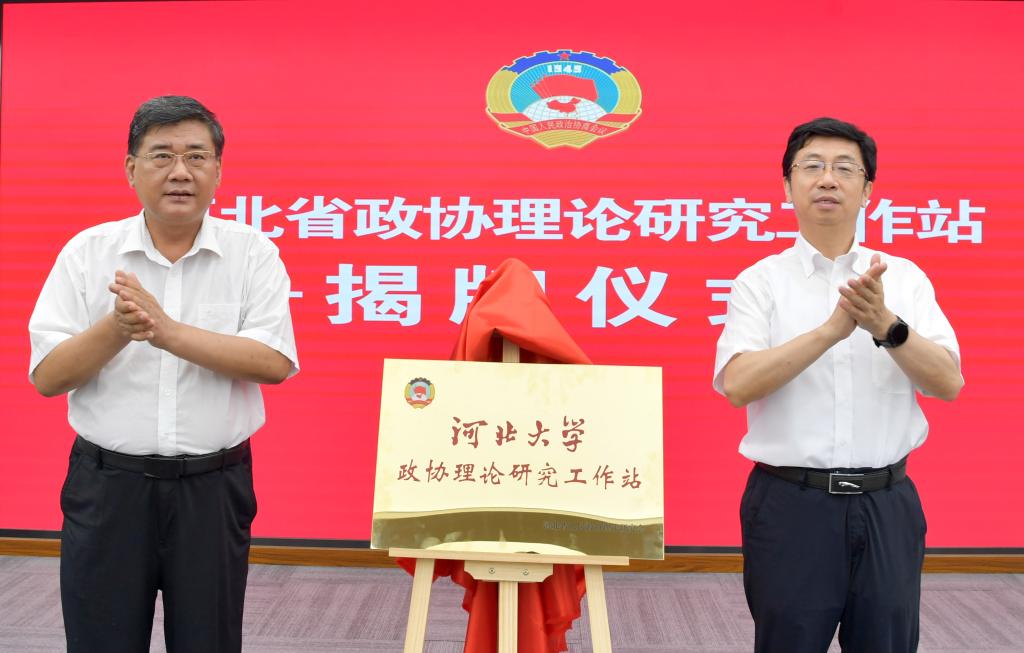 省政協研究室主任、機關黨組成員馬譽輝與校黨委書記郭健共同為“河北大學省政協理論研究工作站”揭牌