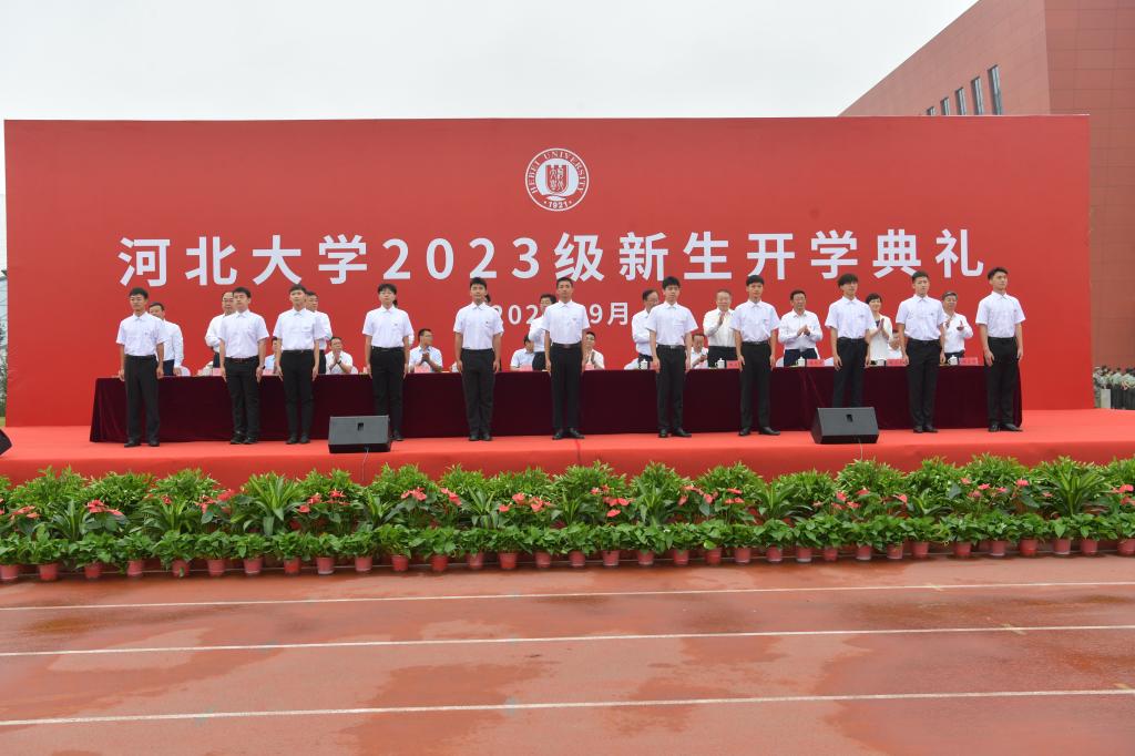 校黨委書記郭健主持開學典禮,代表學校向2023級全體新同學表示熱烈的祝賀和誠摯的歡迎,向全校廣大教師致以節日的問候和美好的祝福!他深情寄語全校新生要堅定不移聽黨話、跟黨走,立志做有理想、敢擔當、能吃苦、肯奮斗的新時代好青年,用一生的奮斗踐行“請黨放心,強國有我”的青春誓言。要做習近平新時代中國特色社會主義思想的堅定信仰者和忠實實踐者,自覺踐行社會主義核心價值觀,大力弘揚愛國主義精神,內化于心、外化于行,用思想之光照亮奮進之路, 用信仰之力開創美好未來,不負時代,不負華年。要秉承“實事求是”校訓精神,繼承和發揚百年河大優秀傳統,好好學習,天天向上,學行并茂,全面發展,塑造更加優秀的自己,為百年強校之夢增光添彩!