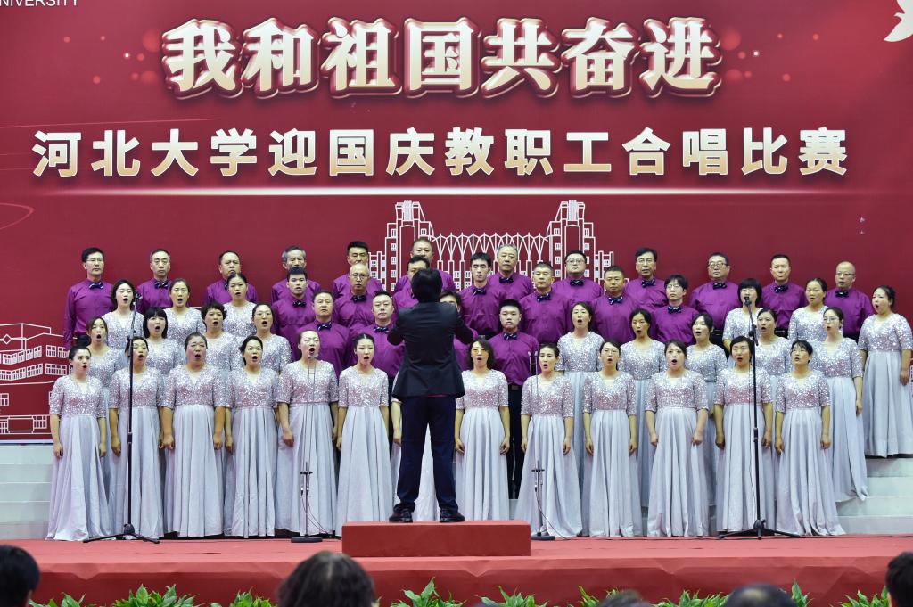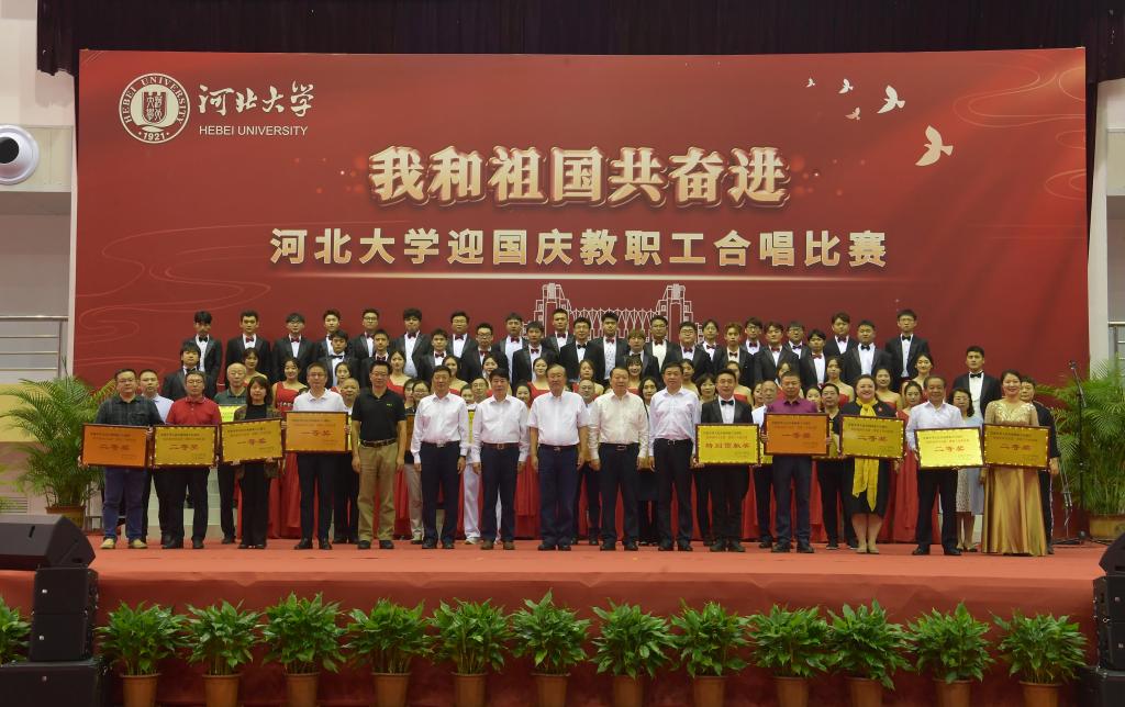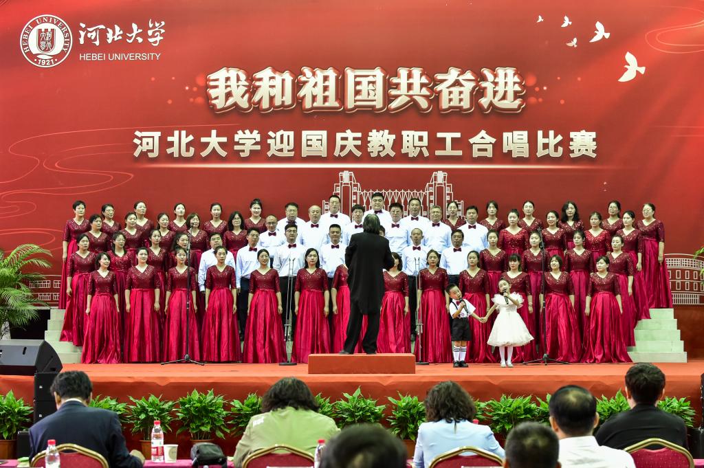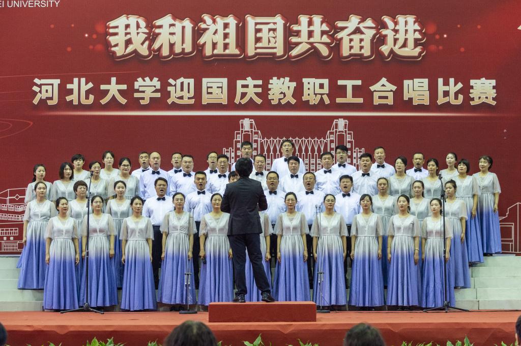 合唱比賽在藝術學院師生一曲歡快的《美麗中國》開場舞中拉開帷幕。比賽中,31支參賽代表隊以整齊的隊列、飽滿的激情、昂揚的精神面貌登場,他們激情澎湃,歌聲昂揚——《當那一天來臨》《不忘初心》《太行山上》《家園》……一首首高亢、動聽的歌曲唱出了全校廣大干部職工對祖國的無限熱愛,唱出了一心向黨砥礪前行的滿腔熱情,唱出了凝心聚力奮進一流大學的勇氣和魄力。河北大學藝術學院也帶來了精彩的表演曲目。經過激烈角逐,圖書館、校直機關、直屬單位代表隊獲得比賽一等獎;文學院,工商/國際學院,新聞傳播學院,經濟學院,公共外語教學部、外國語學院,河北大學附屬醫院/臨床醫學院等6個單位代表隊獲得比賽二等獎;醫學部機關、管理學院、法學院、教育學院、生態環境系、生命科學學院、建筑工程學院、馬克思主義學院、出版社有限責任公司等9個單位代表隊獲得比賽三等獎。藝術學院代表隊獲得特別貢獻獎。