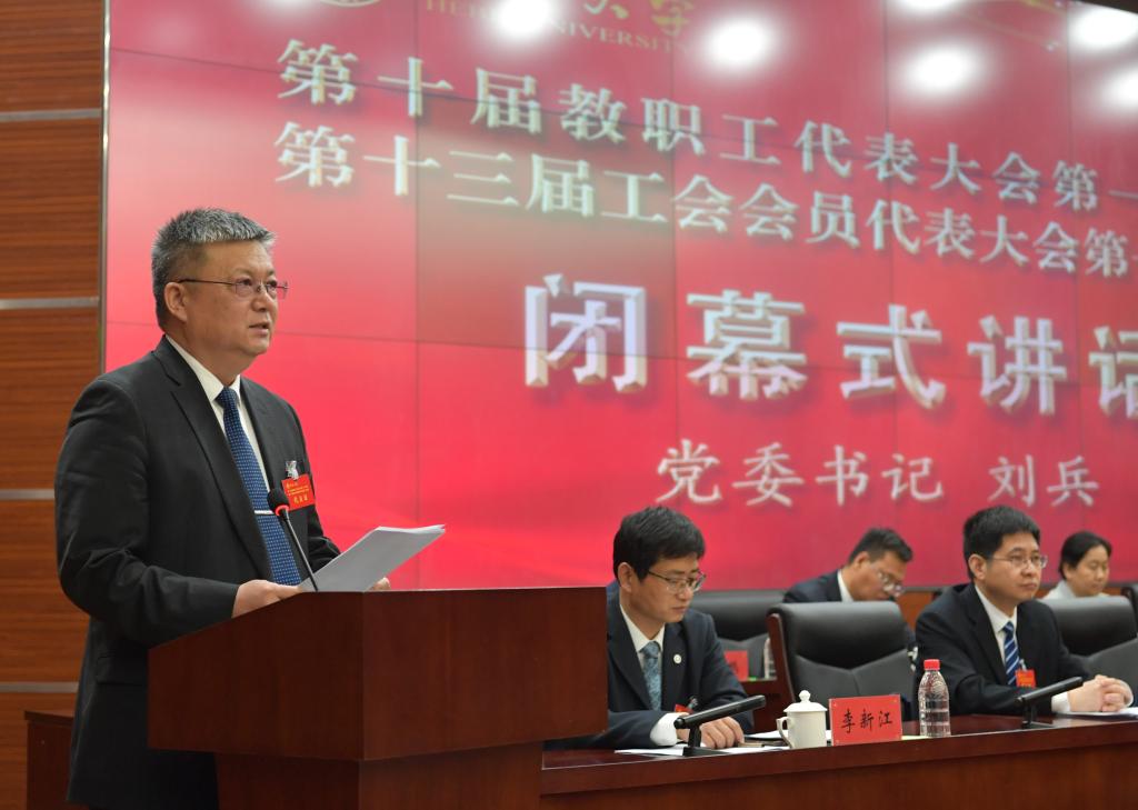 黨委書記劉兵在閉幕式上講話,他代表學(xué)校黨委向大會(huì)圓滿完成既定議程表示祝賀,向各位代表履職盡責(zé)、建言獻(xiàn)策表示感謝。他表示,把發(fā)展藍(lán)圖變成美好現(xiàn)實(shí),需要全校廣大干部師生心往一處想、勁往一處使,用苦干實(shí)干詮釋責(zé)任、用拼搏奉獻(xiàn)成就事業(yè)。就進(jìn)一步加強(qiáng)教代會(huì)、工會(huì)建設(shè),他指出,要始終堅(jiān)定正確政治方向,把教代會(huì)、工會(huì)建設(shè)成為學(xué)校黨委可以信賴、可以依靠、可堪重任的先進(jìn)群眾組織,帶領(lǐng)廣大教職工牢記為黨育人、為國(guó)育才使命,全面落實(shí)立德樹人根本任務(wù),圍繞中心、服務(wù)大局;要不斷增強(qiáng)服務(wù)能力水平,努力成為教職工信得過、靠得住、離不開的知心人、貼心人,不斷提升服務(wù)精度、拓展服務(wù)廣度、提高服務(wù)溫度,扎扎實(shí)實(shí)為教職工做好事、辦實(shí)事、解難事;要強(qiáng)化教職工思想政治引領(lǐng),多做統(tǒng)一思想、化解矛盾、增進(jìn)感情、激發(fā)動(dòng)力的工作,多做強(qiáng)信心、聚人心、暖人心的工作,使廣大教職工努力做學(xué)校改革發(fā)展的支持者、參與者和推動(dòng)者。