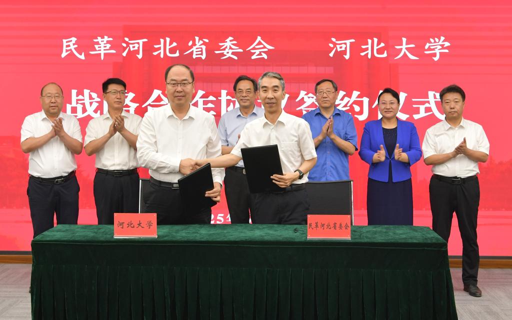 6月29日,民革河北省委會與河北大學深化戰略合作暨社會和法治研究中心成立會議在河北大學召開。河北省政協副主席、民革河北省委會主委何秉群出席會議并講話。民革河北省委會副主委、河北經貿大學校長高波,河北大學黨委副書記、校長孟慶瑜致辭。會議由河北大學黨委常委、副校長張鋒主持。