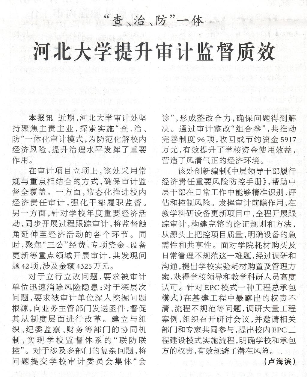 “查、治、防”一體 河北大學提升審計監督質效