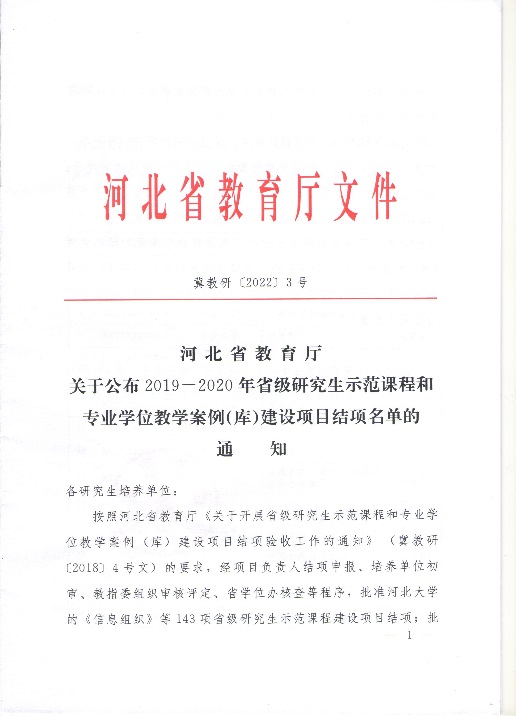 近日,河北省教育廳下發(fā)《關(guān)于公布2019-2020年省級(jí)研究生示范課程和專業(yè)學(xué)位教學(xué)案例(庫)建設(shè)項(xiàng)目結(jié)項(xiàng)名單的通知》(冀教研〔2022〕3號(hào)),我?!缎畔⒔M織》等18項(xiàng)省級(jí)研究生示范課程建設(shè)項(xiàng)目、《心力衰竭藥物及器械治療案例教學(xué)》等20項(xiàng)省級(jí)專業(yè)學(xué)位教學(xué)案例(庫)建設(shè)項(xiàng)目順利通過驗(yàn)收。
