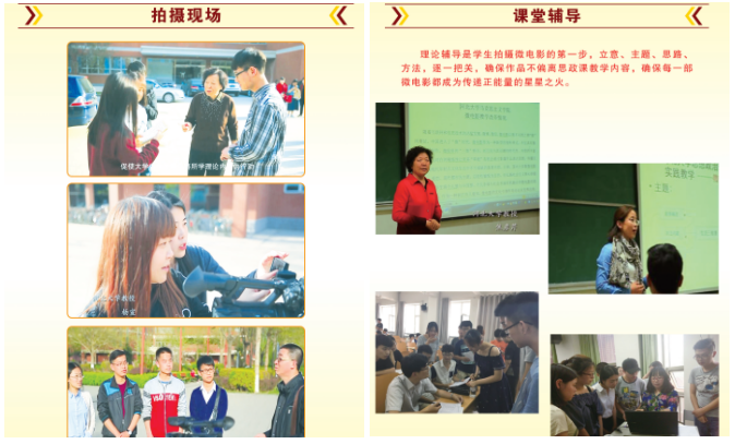 微電影教學促進大學生以藝術化方式學習踐行習近平新時代中國特色社會主義思想。教師們組織“幸福微影”學生社團利用“幸福微影”微信公眾號推送教研成果100余期,還指導學生獲得教育部“我心中的思政課”高校大學生微電影大賽三等獎3項、河北省高校思政課教學成果展示一、二等獎6項。