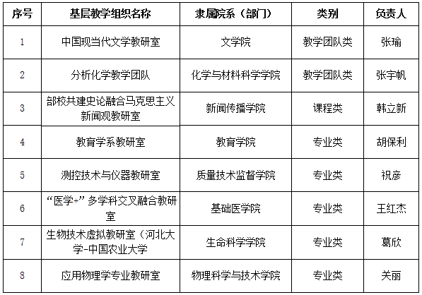 近日,河北省教育廳發布了《關于公布2023年度河北省高等學校優秀和達標基層教學組織名單的通知》(冀教高函〔2023〕80號),我校中國現當代文學教研室等8個基層教學組織榮獲省級優秀基層教學組織,外國文學教研室等107個基層教學組織獲批省級達標基層教學組織。